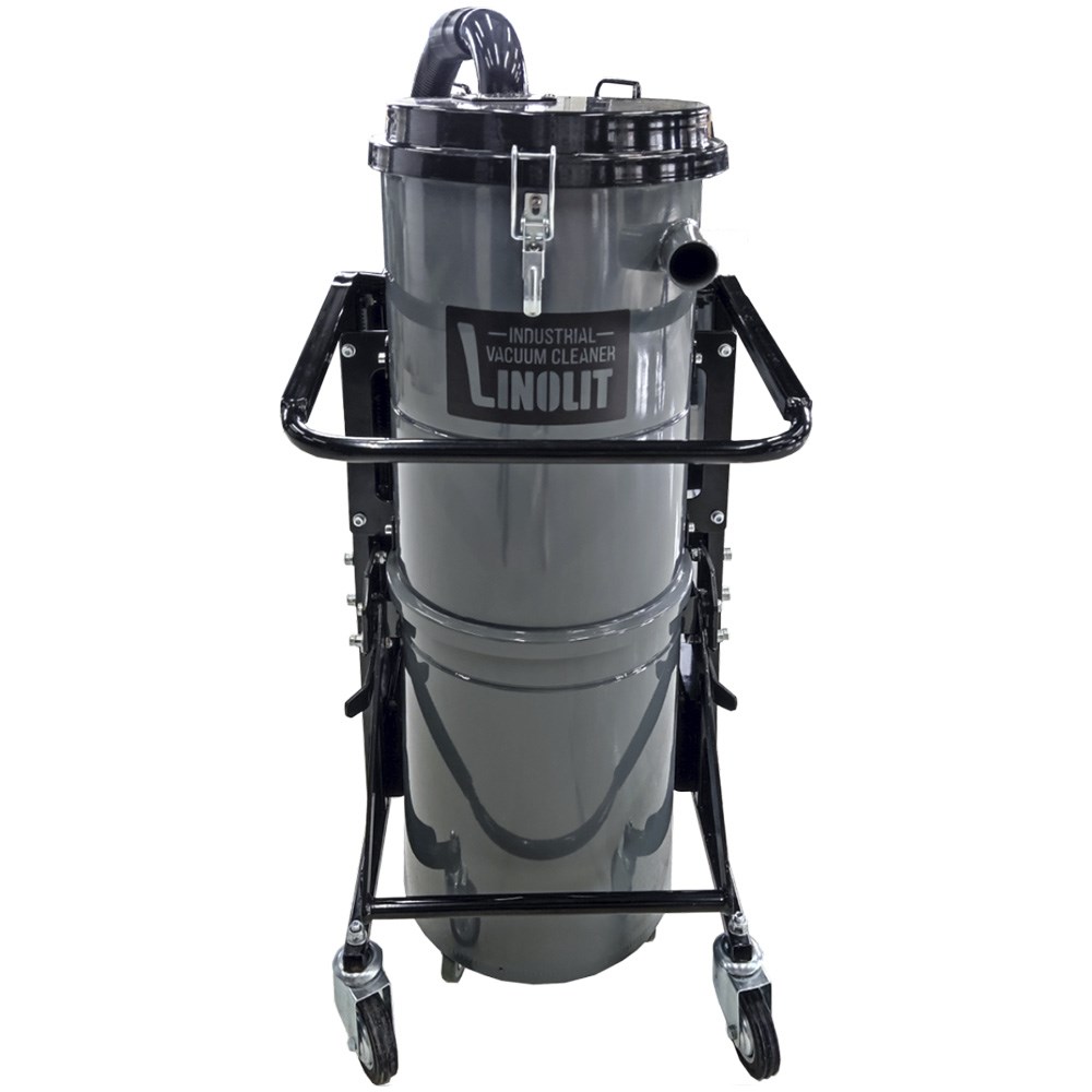 Пылесос промышленный Linolit 742D установлен на одну платформу-тележку с циклоном. Обеспечивает быстрое и качественное удаление сухой шлифовальной, бетонной, строительной и гипсовой пыли. Подходит для совместной эксплуатации с любым шлифовально-полировальным оборудованием. 2 турбины по 1,5 кВт создают необходимое разряжение для повышения всасывающей силы (до 27 кПа). Питание устройства выполняется от однофазной сети с напряжением 220-230В. Два бака-циклона на 30 и 40 литров позволяют собирать большой объем загрязнений. HEPA-фильтр класса М задерживает 99,5% частиц размером 0,1-0,3 микрон. Стальной корпус с защитным порошковым покрытием устойчив к механическим воздействиям. По периметру аппарата размещена рама для придания дополнительной устойчивости.