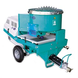 Конструкция: прочный стальной бункер помещает до 120 литров смеси с фракцией диаметром до 8 мм. Вибросито обеспечивает очистку от крупных примесей при помощи вибрационных сил. Оборудован принудительный смеситель и компрессор производительностью 310 л/мин.
