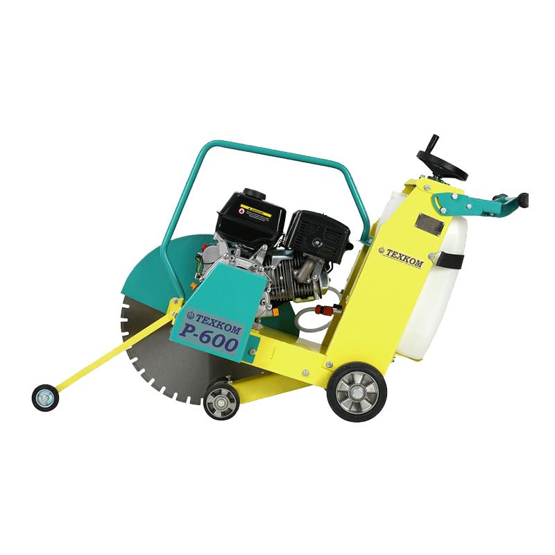 Швонарезчик Техком Р-600С является эффективным устройством для нарезания швов в строительных материалах. Удобен для ремонта дорог, обрезания тротуарной плитки, бордюров. Функционирует от четырехтактного мотора Loncin мощностью 11 л.с. Включается вручную.