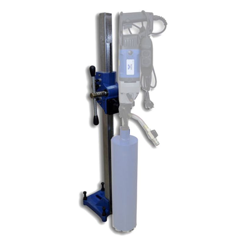 Удобная малогабаритная станина, которая отличается лёгкостью (вес всего 7 кг) и компактностью, что значительно облегчает транспортировку и эксплуатацию. Позволяет работать с двигателями алмазного бурения, мощность которых не превышает 2 кВт. Максимальный доступный диаметр коронки составляет 150 мм, рабочий ход находится в пределах 450 мм. Высота штатива достигает 0,75 метров. Станина идеально подходит для работы с двигателем KEOS-130. Крепление производится анкерным методом с помощью шпильки или распорной штанги, за счёт чего обеспечивается надёжная фиксация мотора.