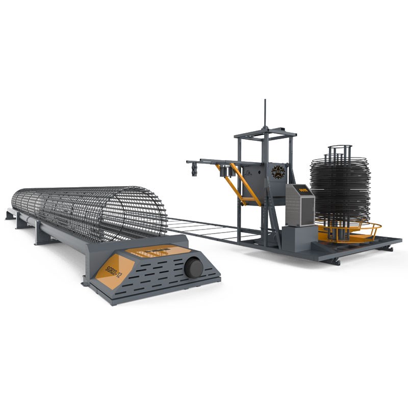 Конструкция: панель конвертера частоты контролирует скорость движения и выпрямления арматуры, погрешность навивки не превышает 10 мм. Конфигурация оборудования позволяет изготавливать обрешетку длиной до 12 м, весом до 6 тонн при регулируемой частоте вращения от 0 до 6 об/мин.