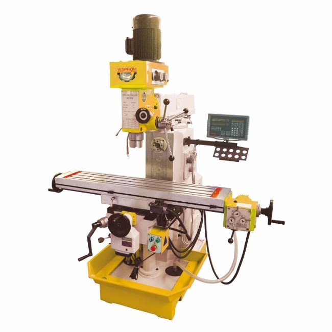 Фрезерный станок универсальный PROMA FHX-50PD применяется в производственных цехах. Подходит для торцевания, сверления, фрезерования, резьбонарезания и прочих типов работ. Обработка может выполняться как в вертикальной, так и в горизонтальной плоскости. Вертикальный шпиндель может наклоняться на 60 градусов в обе стороны.