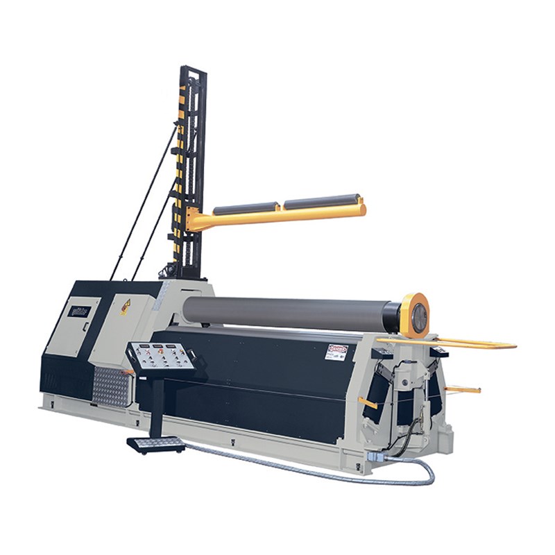 Установка оснащена гидродинамическим краном подпорки заготовок, боковыми упорами и графическим регулятором с выбором режима производства. Валки изготовлены из высокопрочной стали. Максимальная длина обработки 2050 мм. Диаметр вала составляет 460 мм. Верхний и сторонние ролики вращаются посредством трех независимых двигателей. Устройство работает со скоростью 1,5-5 м/мин.