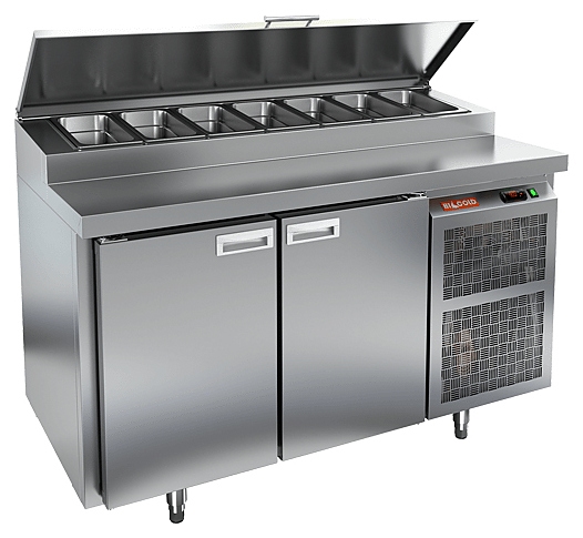 Стол для пиццы HICOLD PZ1-11/GN используется на предприятиях общественного питания и торговли для раскатки теста и обработки ингредиентов, используемых для приготовления пиццы, салатов и других блюд, а также для охлаждения и кратковременного хранения скоропортящихся продуктов и напитков. Модель совмещает в себе рабочую поверхность и охлаждаемый объем, что значительно упрощает работу повара, так как все необходимые компоненты всегда находятся под рукой. Корпус и столешница выполнены из нержавеющей стали.