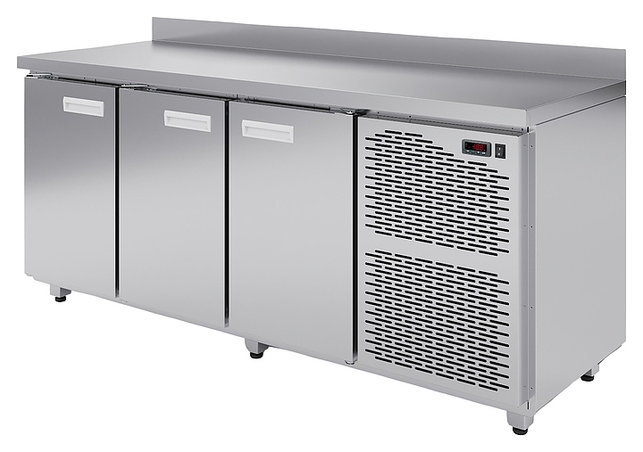 Холодильный столАРКТО СХС-3-60предназначендля хранения предварительно охлажденных пищевых продуктовна предприятиях общественного питания и торговли. Модель оснащена расположенным сбоку агрегатным отсеком с фронтальной термовыводящей решеткой, столешницей с задним бортом, 4 распашными дверьмии электронным блоком управления с цифровым дисплеем. Корпус выполнен из высококачественной нержавеющей стали.