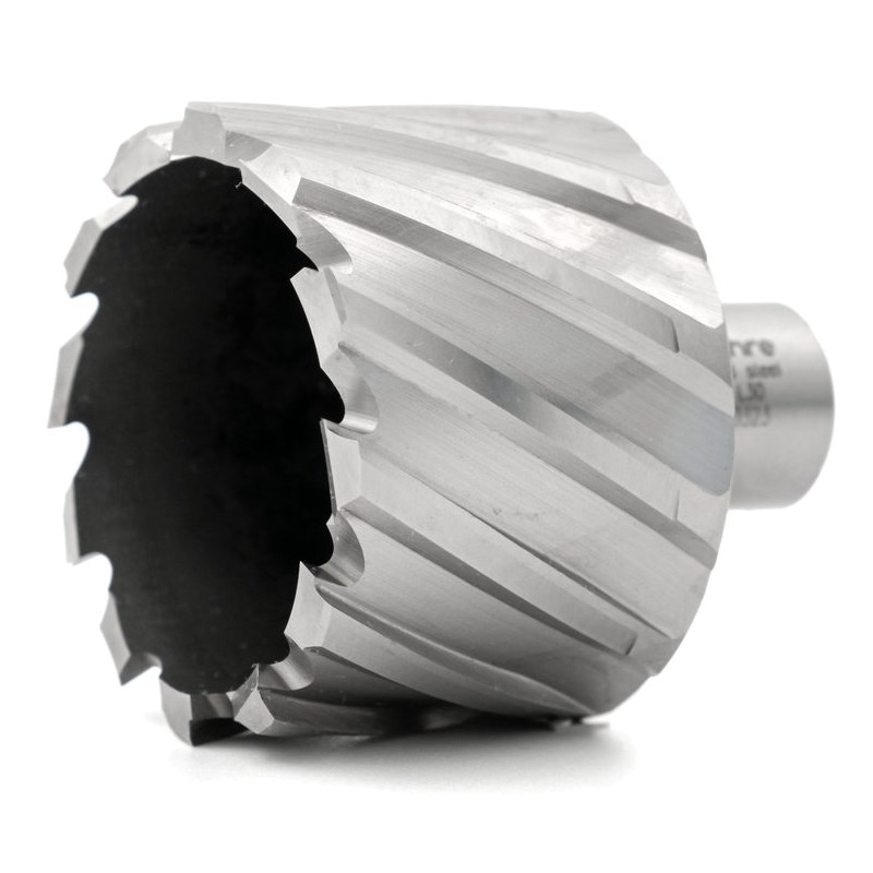 Bohre 57 мм — короткое корончатое сверло длиной 30 мм. Для производства используется сталь быстрорежущая типа HSS, которую можно затачивать до 10 раз. Производительность работы достигает до 1 см/мин. Хвостовик Weldon подходит для большинства сверлильных станков по металлу. Для продления срока эксплуатации рекомендуем работать со смазочно-охлаждающей жидкостью.