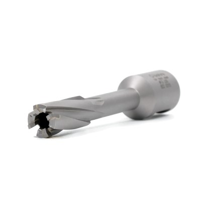 Корончатое сверло с твердосплавными напайками, с длиной рабочей части 55 мм и диаметром 14 мм предназначено для сверлильных работ по различным цветным и серым металлам, а также по армированному пластику и редким сплавам. Зубцы рабочей части изготовлены из износостойких сортов стали, оптимальной для резки наиболее прочных материалов, а специальная геометрия и заточка обеспечивают быстрое и аккуратное сверление. Фреза подходит для применения с большинством магнитных станков — крепление осуществляется посредством распространенного хвостовика Weldon 19. В процессе работы рекомендуется использовать СОЖ.