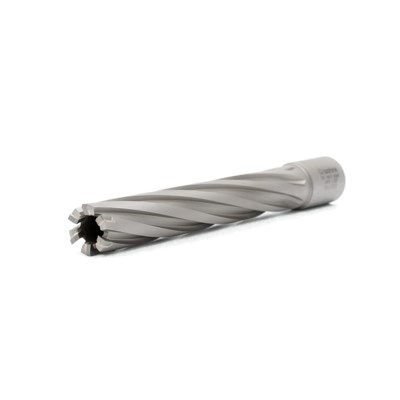 Фреза кольцевая с твердосплавными напайками, диаметром 19 мм и с длиной рабочей части 110 мм оптимально подходит для работ по прочным сортам нержавеющей и легированной стали. Пластины рабочей части изготовлены из износостойкой WC-стали, оптимальной для резки наиболее прочных материалов, а особая форма стружечных канавок и заточка режущей кромки обеспечивают аккуратное и точное сверление. Фреза подходит для применения с большинством магнитных станков — крепление осуществляется при помощи распространенного хвостовика Weldon 19. В процессе работы рекомендуется обеспечить подачу охлаждающей жидкости.