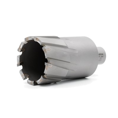 Пустотелое сверло TCT Bohre 47х55 мм подходит для создания сквозных отверстий в металлах увеличенной прочности. Устанавливается на сверлильный станок с магнитным шпинделем Велдон 19. Оборудован напаянными твердосплавными зубьями Sandvik Coromant. Характеризуется высокой термостойкостью и долгим сроком службы. Особая заточка зубцов и стиль канавок предоставляют быстрое и эффективное сверление.