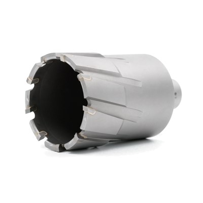Корончатое сверло Bohre TCT с длиной рабочей части 55 мм за счет специальной заточки режущих элементов и стружечных канавок с оптимальной геометрией обеспечивает точное и быстрое сверление и долгий ресурс. Оптимально для работ по прочным сортам нержавещющей и обычной стали, аллюминию, меди, а также CRP и GRP пластику, и для сверления ж/д рельс. Расходник подходит к большому числу моделей магнитных станков — для крепления применяется хвостовик Weldon 19 мм. Для понижения температуры в зоне сверления рекомендуется использовать СОЖ, а для увеличения эффективности фреза кольцевая крепится вместе с выталкивающим штифтом.