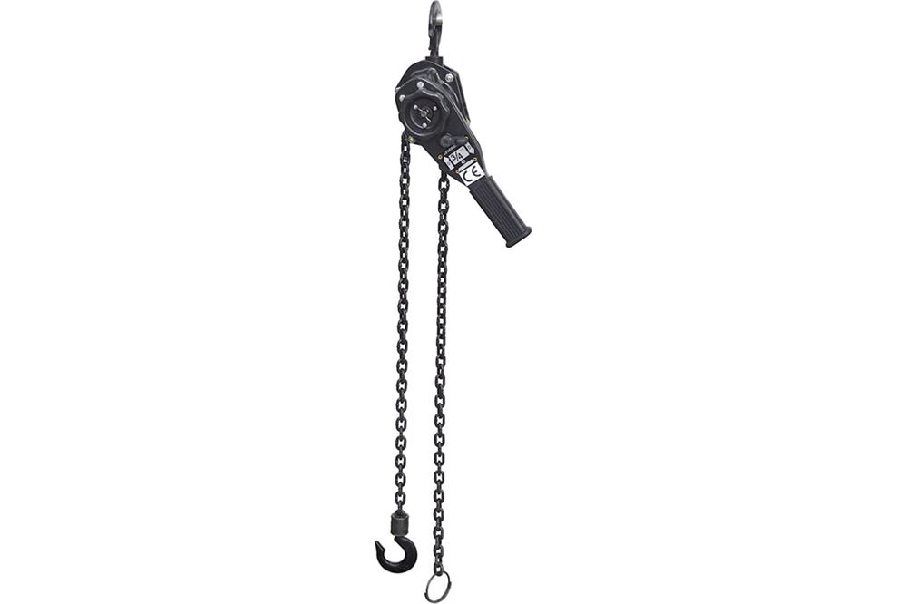 Крепление при помощи стальных крюков Удобная рукоять для передачи усилия Высокопрочная металлическая цепь Не требует подключения к электросети