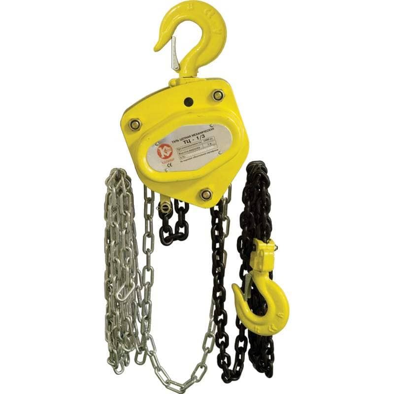 Цепная таль ТЦ-1/3 используется для вертикального перемещения контейнеров массой до 540 кг. Оснащается кованым крюком и карабином, предохраняющим груз от падения или прорыва тары во время подъема. Шестеренный механизм работает в ручном режиме. Устройство поднимает вес на высоту до 8 метров.
