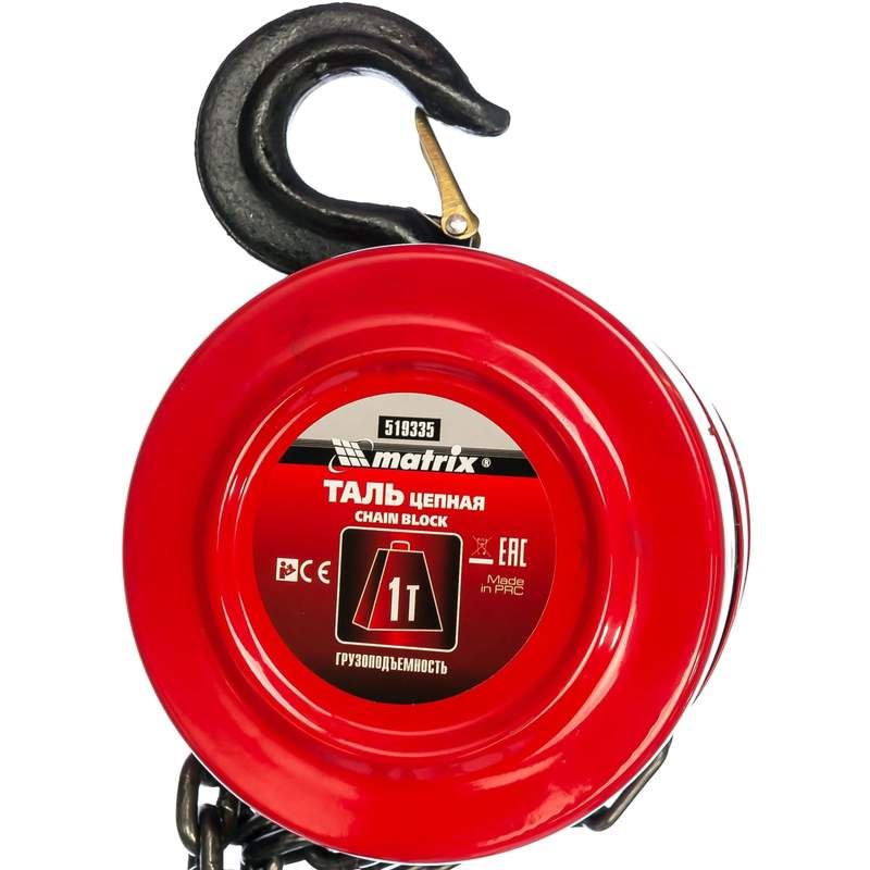 Цепная таль механическая, грузоподъемностью 1 т используется для поднятия грузов в складских работах, во время строительства, а также в быту. Кованый крюк оснащенный карабином поднимает вес на высоту до 2,5 метров. Ширина зева крюка 34 мм, оснащен щеколдами предохраняющими груз от потери и повреждения. Изделие не требует внешнего источника питания, поэтому может использоваться на объектах, где отсутствует электричество. Окрашенный металлический корпус изделия надежно защищен от ржавчины.