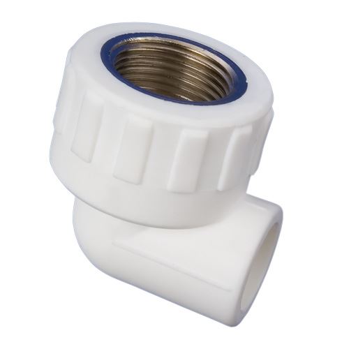 Двухсторонний комбинированный фитинг для соединения под углом 90° друг к другу полипропиленового трубопровода и компонента инженерной системы с резьбовым подключением. Резьба фитинга – внутренняя трубная.