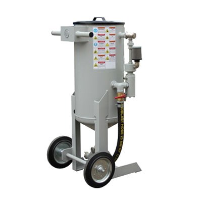 Небольшая пескоструйная установка объёмом 25 литров, предназначенная для обработки бетонных поверхностей, чистки металлических изделий от ржавчины, старых лакокрасочных слоёв, подготовки перед нанесением антикоррозийного покрытия. Подходит для работы с различными абразивными материалами с максимальным диаметром фракции 2 мм. Используемая смесь должна быть сухой и очищенной от загрязняющих примесей и масла. Управлением осуществляется вручную. Рекомендуется для эксплуатации на открытом воздухе, где работники будут защищены от пыли. В комплект поставки входит вентиль с дозированием ADA 10SK.