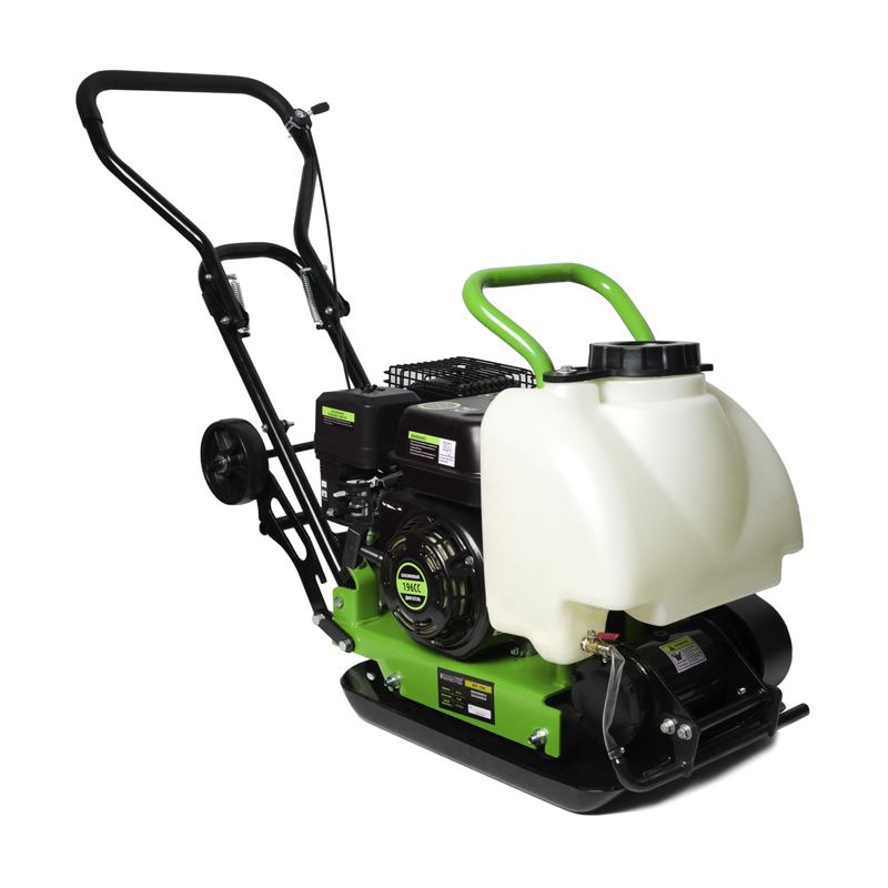 Подходит для уплотнения всех видов грунтов, тротуарной плитки Удобная конструкция Компактные размеры и эргономичный дизайн В комплекте колеса, ковер и бак для воды