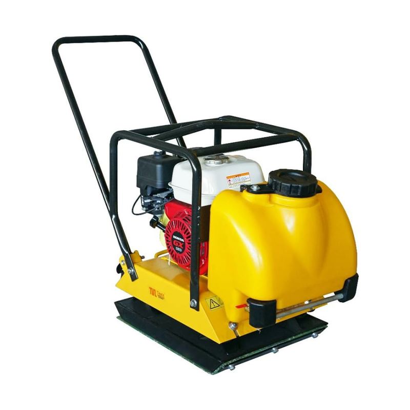Функционирует от надежного японского двигателя Хонда. Сварная рама упрощает зацепку крюком для транспортировки краном. Колеса позволяют изменять направление движения. Стальная плита выдерживает увеличенные нагрузки. Встроенный бак для воды увлажняет поверхность подошвы.