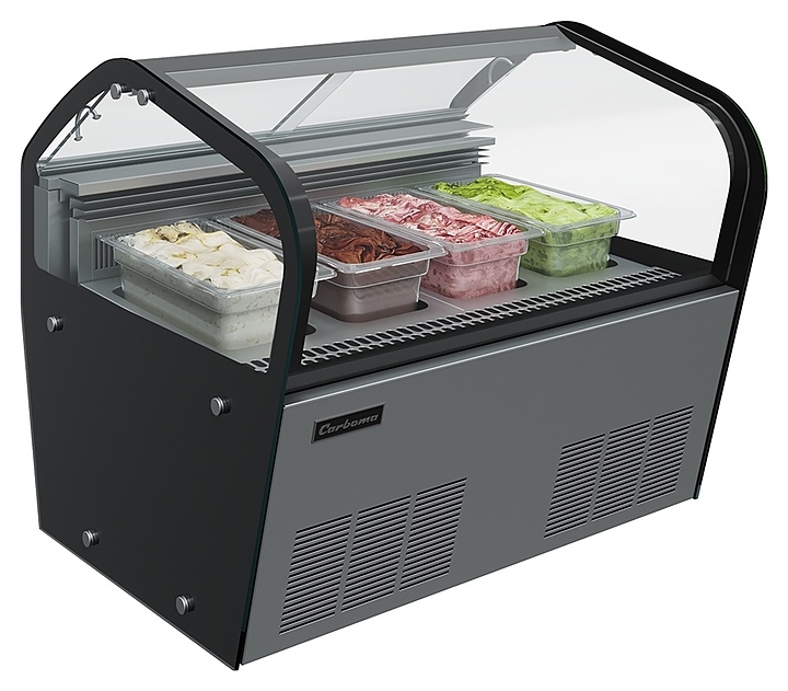 Витрина для мороженого Carboma I60 VL 0,8-1 JOYиспользуетсяна предприятиях общественного питания и торговлидля охлаждения, хранения и демонстрации мягкого и других видов мороженого. Модель оснащена электронным блоком управления Carel, изогнутым фронтальным и 2 боковыми стеклопакетами высокой степени прозрачности. Каркас выполнениз стали с антикоррозийным покрытием, фронтальная панель из стали с покрытием темно-серогоцвета, экспозиционные поддоны из нержавеющей стали, термоизоляция из пенополиуретана, гастроемкости из прозрачного поликарбоната.