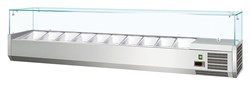 Холодильная витрина Koreco VRX 2000 335 WN предназначена для демонстрации, охлаждения и кратковременного хранения салатов, закусок, ингредиентов для пиццы и т.д. на предприятиях общественного питания и торговли. Теплоизолированный корпус выполнен из нержавеющей стали AISI 201, крышка - из закаленного стекла со специальным крепежом.