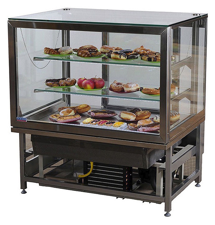 Холодильная витрина ТехноБалт Вена 1,50 ПСНпредназначена для демонстрации, охлаждения и кратковременного хранения кондитерских изделий и выпечки на предприятиях общественного питания и торговли. Модель оснащена 2 полками, основанием, опорными ножками и выдвигаемым передним стеклом для облегчения уборки.Корпус и дно (столешница) выполнены из стали, полки - из стекла.