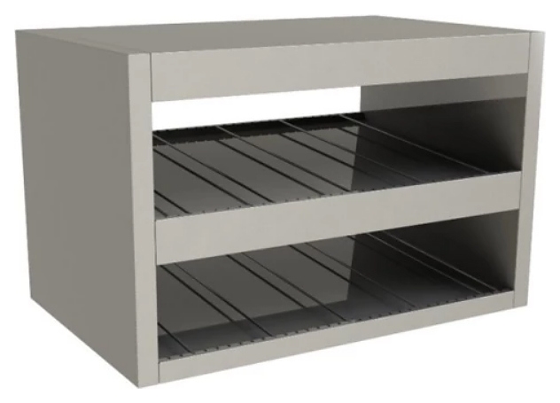 Тепловая витрина Rstoinox ВТБ-10/6 используется на предприятиях общественного питания и торговли для подогрева, кратковременного хранения и демонстрации бергеров. Модель оснащена 2 терморегуляторами для независимой регулировки температуры каждой полки и подсветкой полок. Каркас и полки выполнены из пищевой нержавеющей стали AISI 430 толщиной 1 мм.