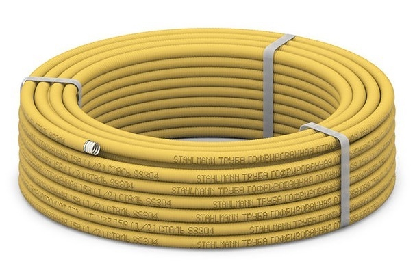 Российский продукт гофрированные трубы Stahlmann, выполнены из нержавеющей стали высокого качества, применяются для систем отопления, пожаротушения, водо- и газоснабжения, а также используются для тёплых полов. Ассортимент труб очень широк и бывает четырех типов это гибкие отожженные трубы для сложных условий монтажа, неотожженные и подходящие для прямых участков трасс, отожженные в желтом корпусе для газораспределительного оборудования и в белом корпусе для установки в системах водоснабжения.
