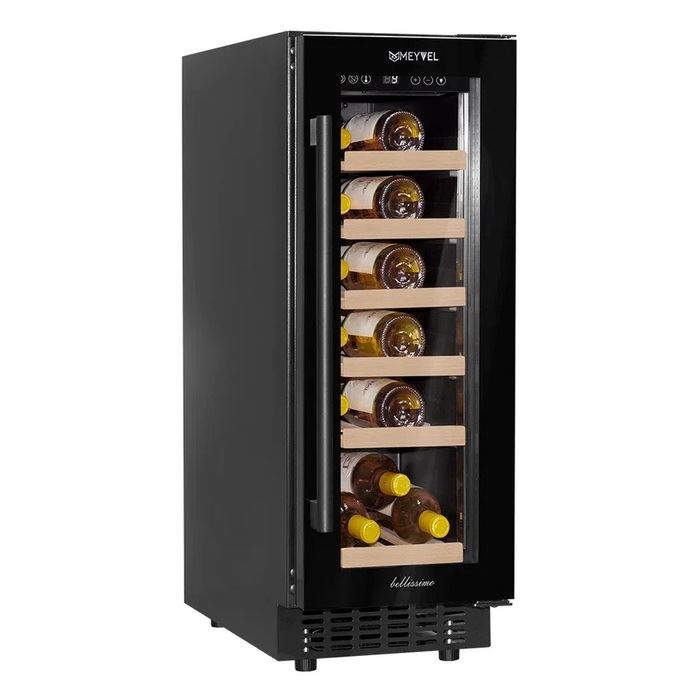 Стильный винный холодильник MEYVEL (Мейвел) MV19-KBT1 предназначен для хранения алкогольных напитков в оптимальных микроклиматических условиях. На выдвижных полках шкафа могут быть размещены бутылки стандартного типа бордо. Модель обладает стеклянной дверцей, защищенной от проникновения ультрафиолетовых лучей и позволяющей продемонстрировать коллекцию вин.