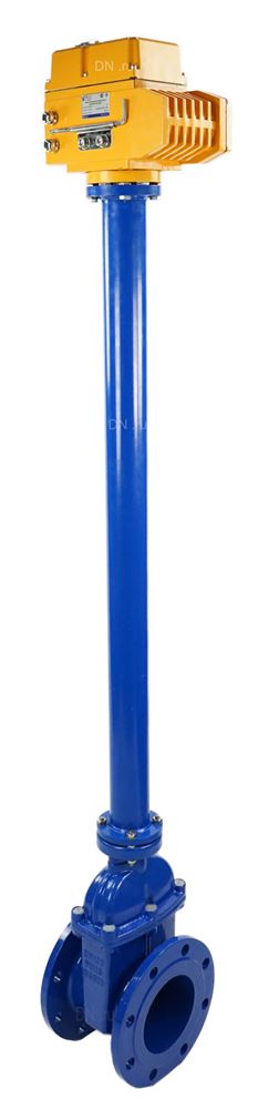 Задвижка клиновая 30ч939р DN GVWN1414E-2W-F Ду125 Ру16 фланцевая, с обрезиненным клиномс ISO-фланцем и круглым штоком, цвет - синий, с колонкой управления F10 (ОСТ тип А, Б) L=2000 и электроприводом DN MT-N-020Z-O1-380VAC-У1 380В