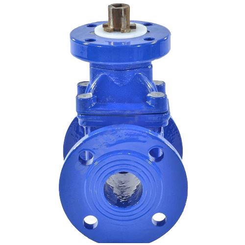 Задвижка клиновая Китай 30ч939р Ду150 Ру16 аналог МЗВ фланцевая синяя, корпус - чугун, обрезиненный клин, Тмакс=120°C, с невыдвижным штоком под привод