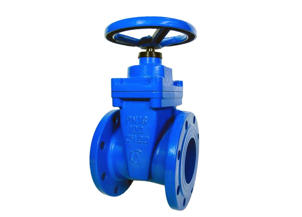 Задвижка клиновая ЛМЗ 30ч39р Ду50 Ру16 аналог МЗВ SLG13 фланцевая синяя, корпус - чугун, уплотнение - EPDM, обрезиненный клин, Тмакс=115°С, с невыдвижным штоком и штурвалом