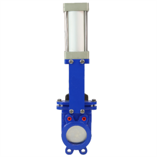 Чугунные шиберные задвижки относятся к классу запорно-перекрывающей арматуры, где запорный элемент, выполненный в виде ножа, перемещается возвратно-поступательными движениями, направленными перпендикулярно потоку рабочей среды. Пневмопривод является поршневым двустороннего действия. При подаче сжатого воздуха в одну из полостей цилиндра и соединения другой полости с атмосферой, поршень вместе со штоком перемещается, создавая толкающее (на закрытие) или тянущее (на открытие) усилие.